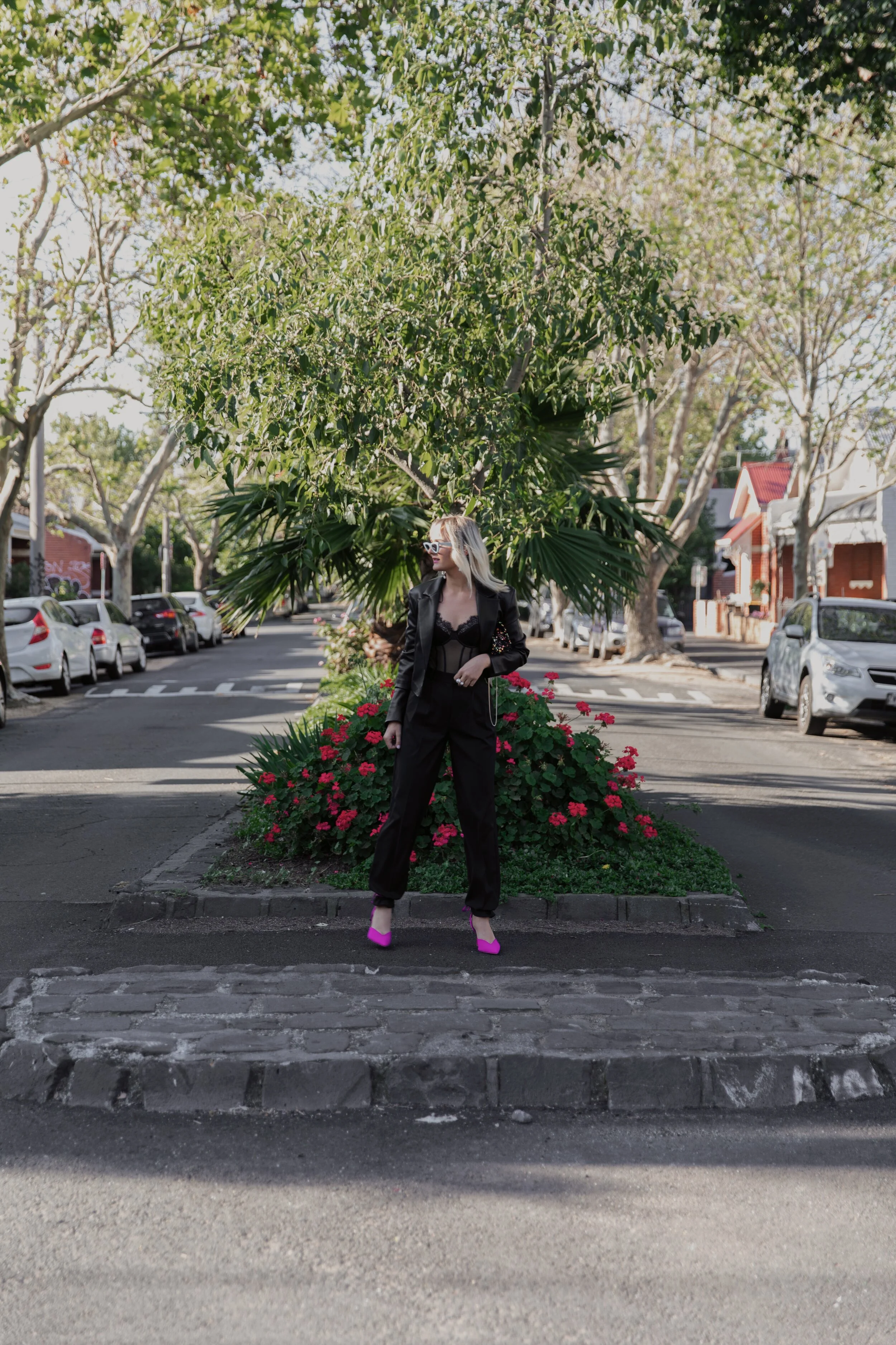 Glasses are Celine, pants are from The Frankie Shop, bodysuit is by Bras n Things and blazer is new season Zara
