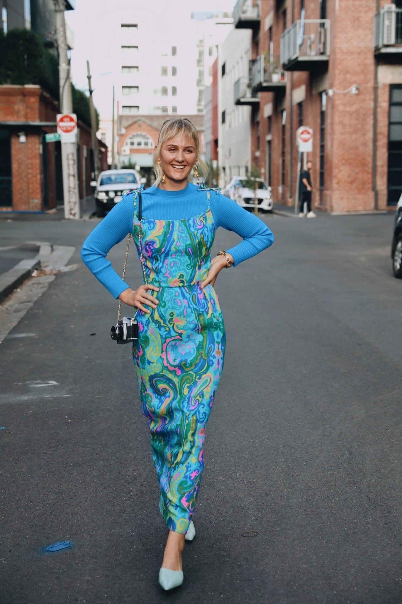 Dress is vintage, knit is new season Scanlan Theodore, earrings from Kathleen Kedwell Jewels and my shoes are from Tony Bianco.